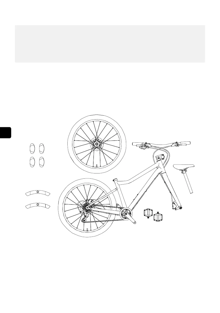 Compara tu bicicleta woom con la ilustración para asegurarte de que está completa.