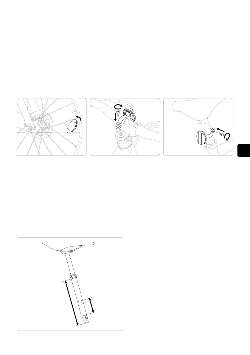 Coloca los reectores en los radios. Monta el reector blanco en el manillar y el rojo en la tija del sillín.