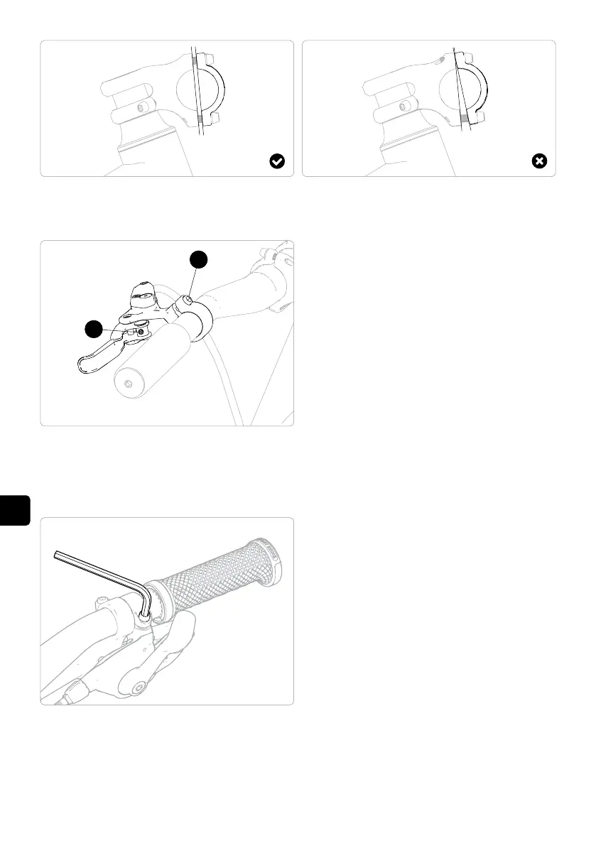 stūres rokturi, grieziet bremzes sviras (1) regulēšanas