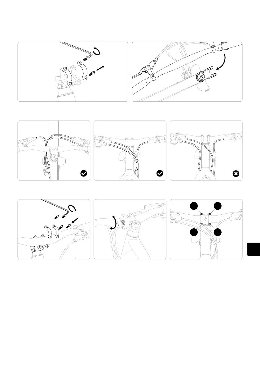Cablurile de frână și de la schimbătorul de viteze trebuie să treacă prin stânga tubului de direcţie.
