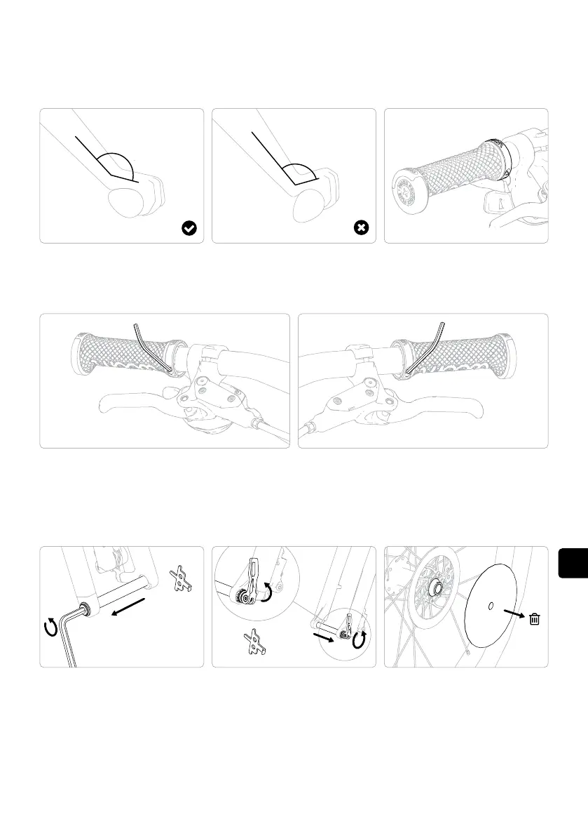 La montarea roţii din faţă se vor verica distanţierele de la ambele capete ale butucului.