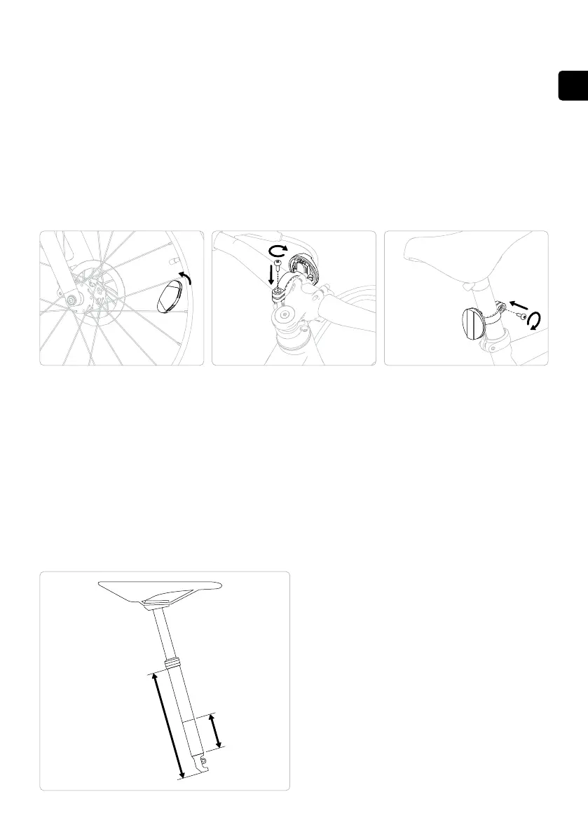 Mount the white reector on the handlebars and the red reector on the seatpost.