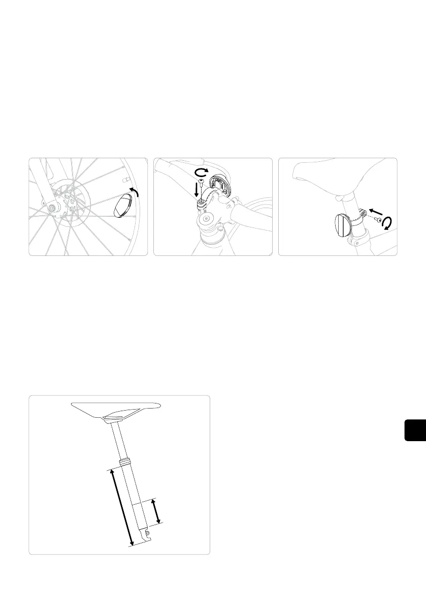 Namontujte biele odrazové sklo na riadidlá a červené na sedlovku.