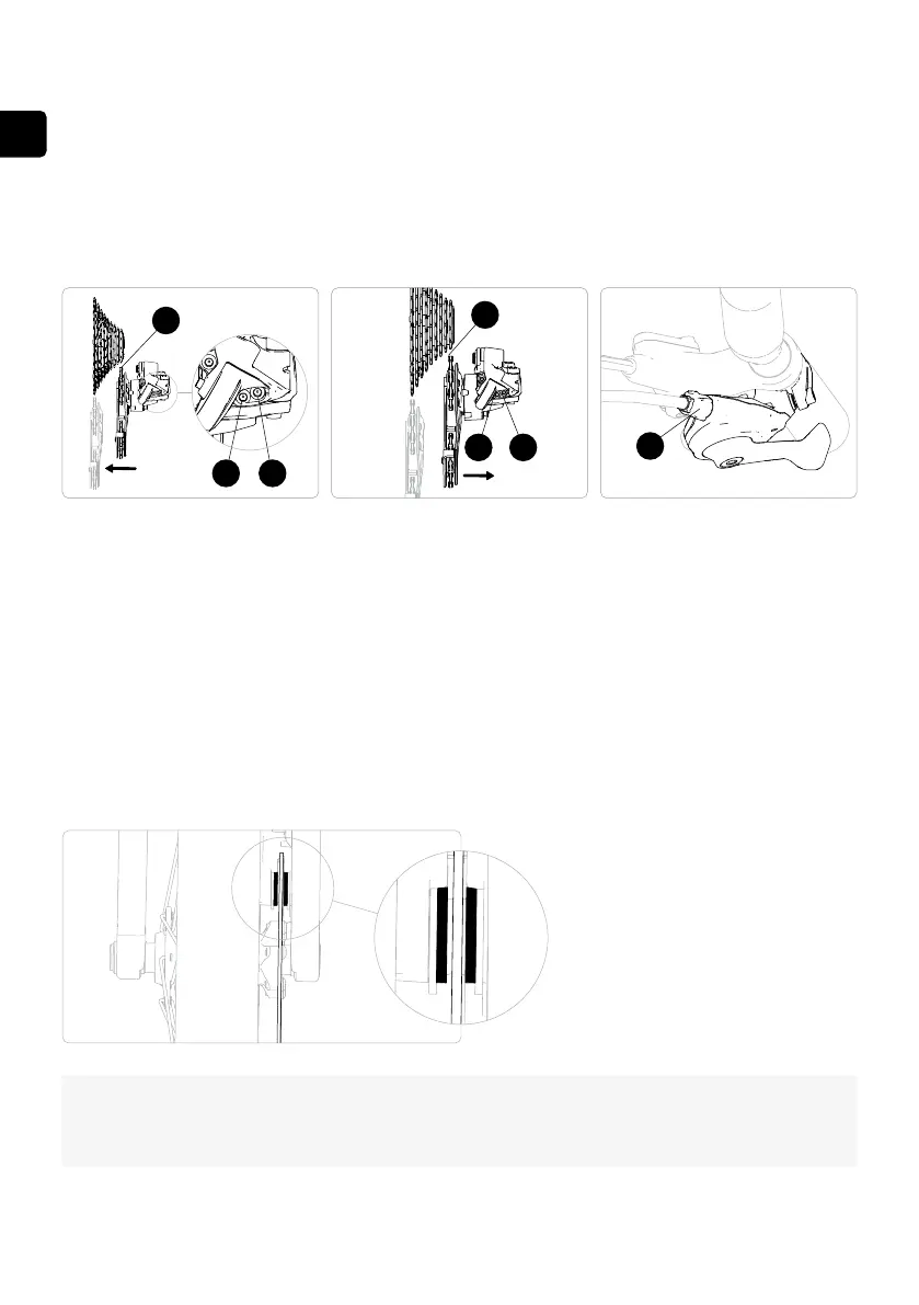 largest sprocket after activating the trigger shifter, tighten the gear cable by turning the barrel adjuster (2) on the