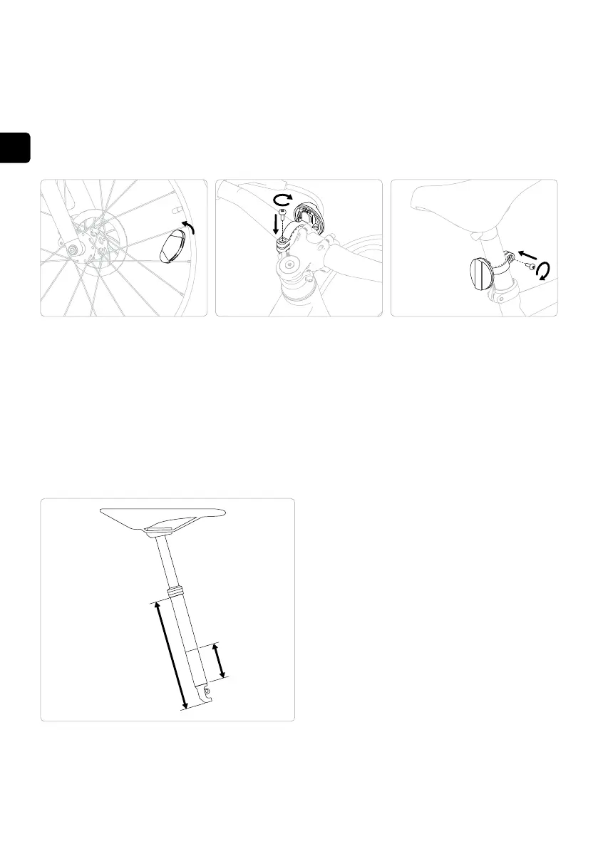 Fissare i catarifrangenti a clip sui raggi. Montare il catarifrangente bianco sul manubrio e quello rosso sul reggisella.