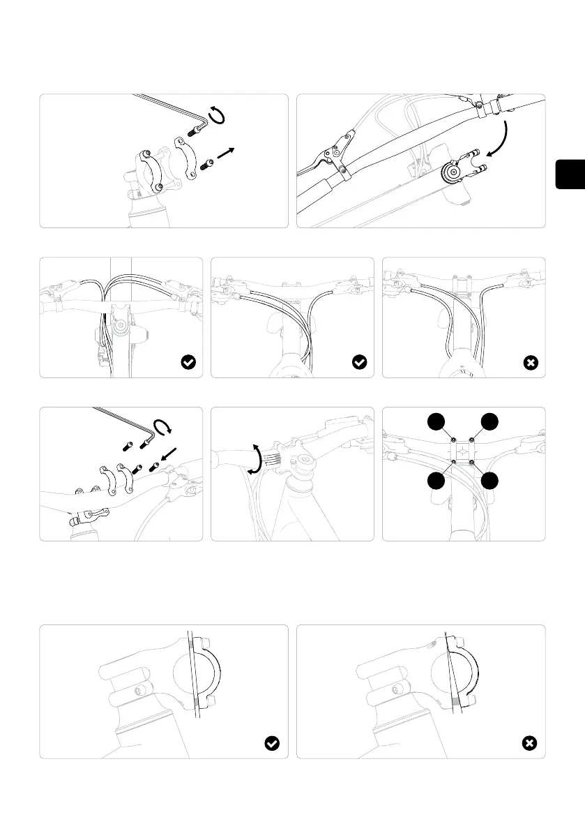 Bremseslangerne og gearkablet skal løbe til venstre for styrerøret.