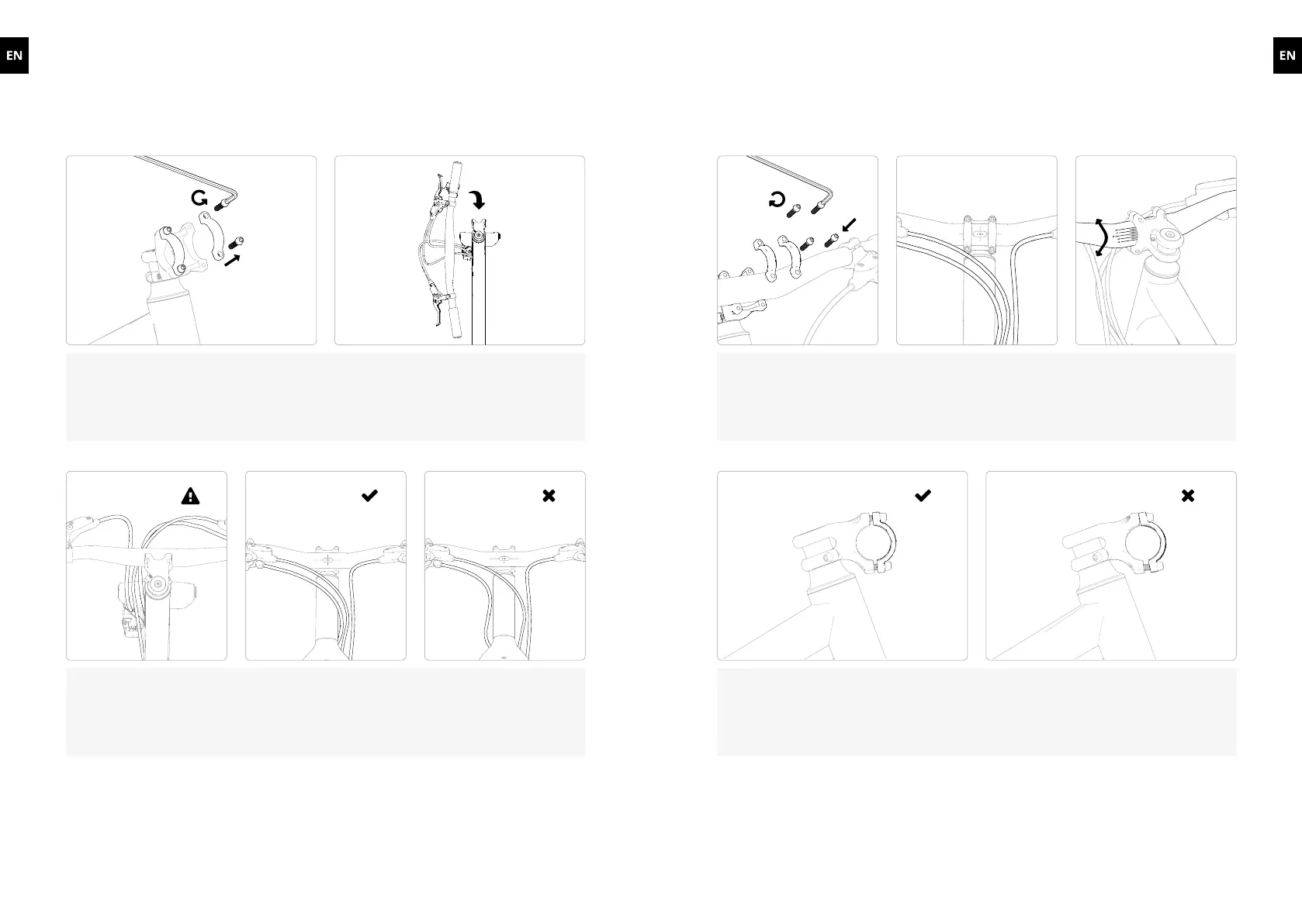 Unscrew the clamps from the stem. Turn the handlebar 90° clockwise and insert into