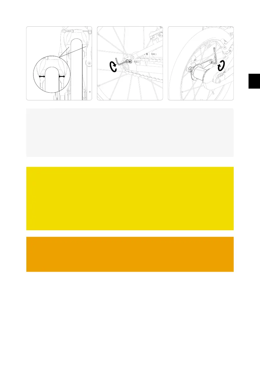 Después de ajustar la tensión de la cadena, comprueba que la rueda está centrada en el
