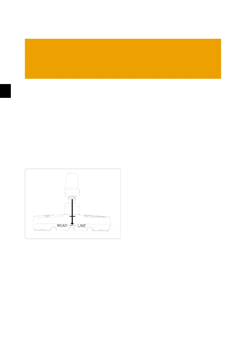 klocki hamulcowe są zużyte do wskaźnika (WEAR LINE),