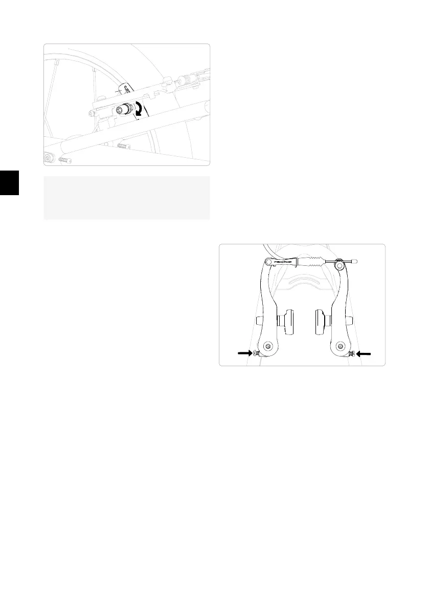 de frână trebuie reajustat folosind șuruburile de prindere de pe brațele de frână.