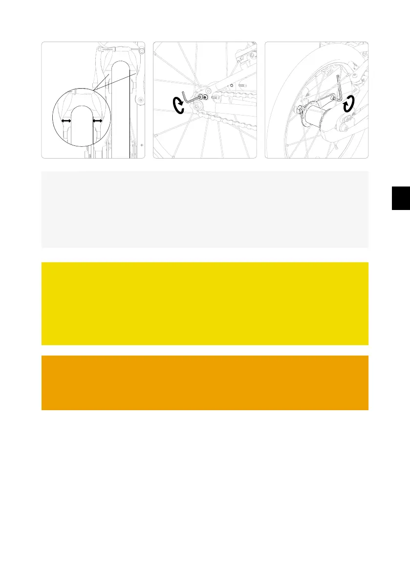 Po nastavení napnutí řetězu zkontrolujte, zda jsou brzdové destičky rovnoběžné s