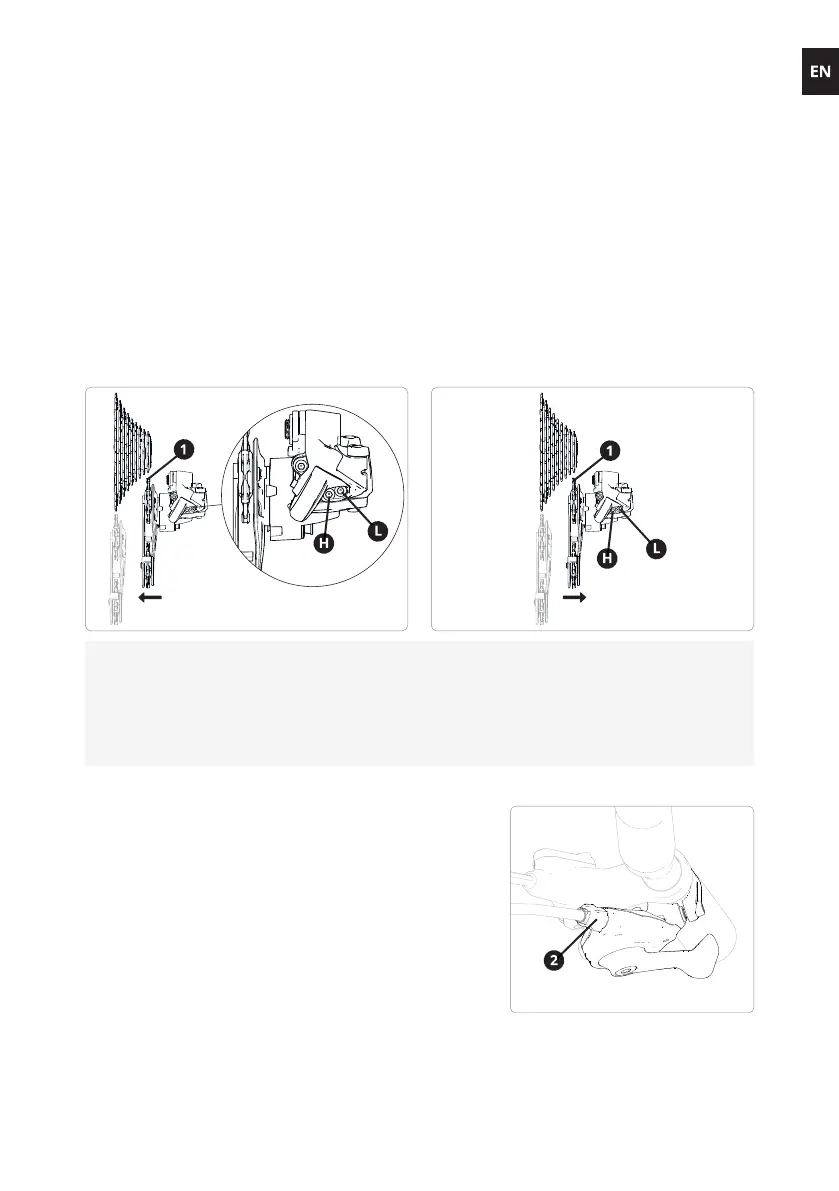 Lower limit: Shift to the smallest sprocket and adjust the rear derailleur (1) by turning the