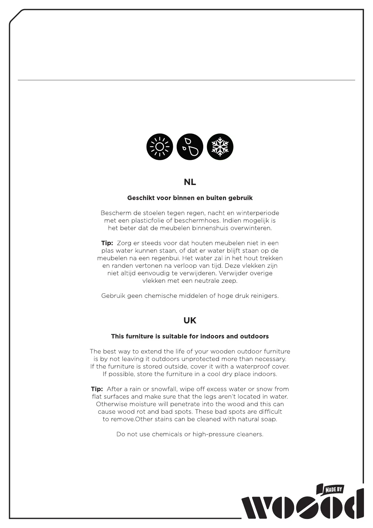 Woood TOM - TOM Rocking Chair: Usage and Care; Indoor and Outdoor Suitability; Care Instructions