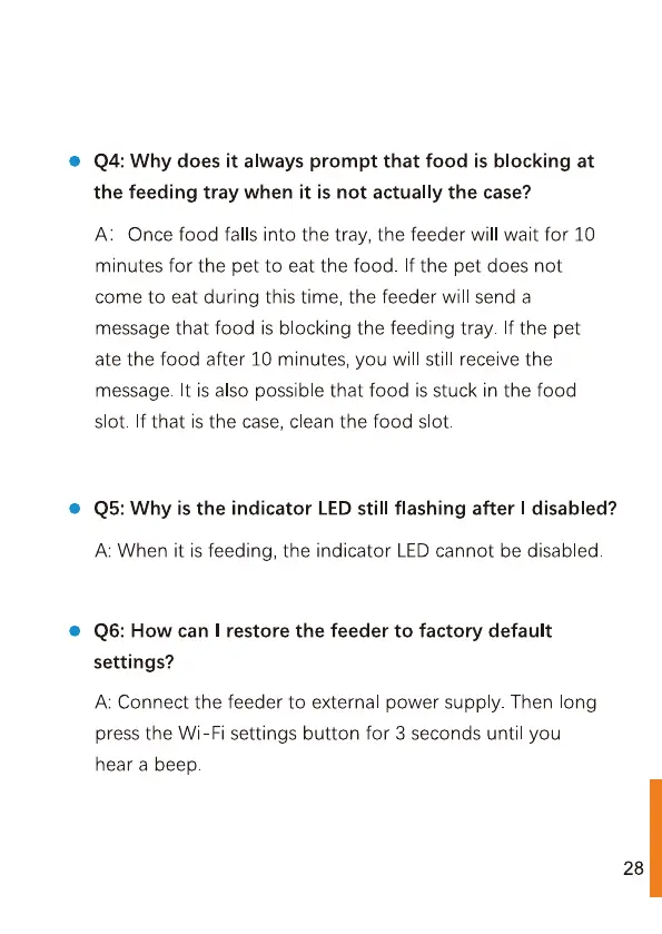 message that food is blocking the feeding tray. If the pet