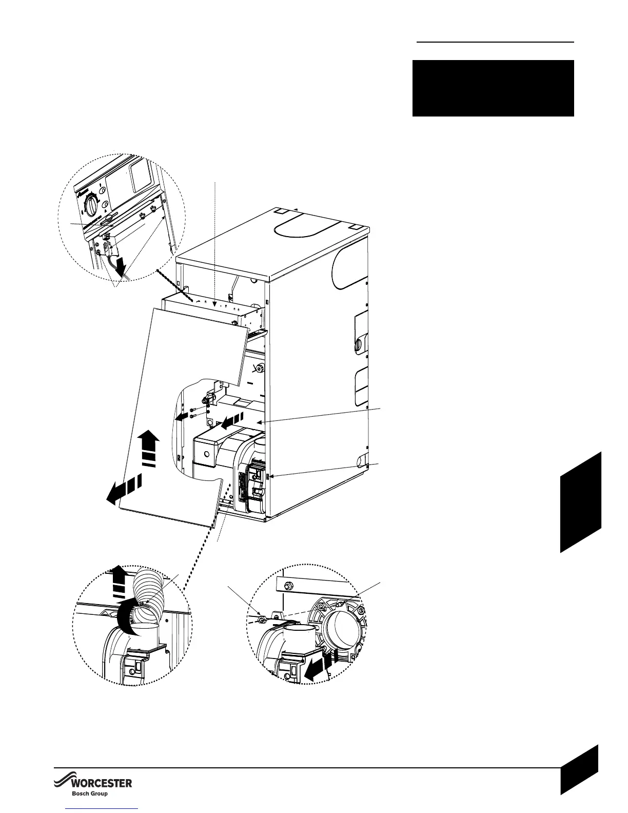 4 Lift front panel (A) upwards off the