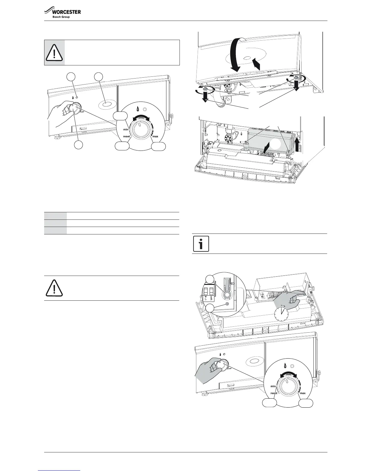 Wait five seconds then turn to maximum. The boiler will be reset.