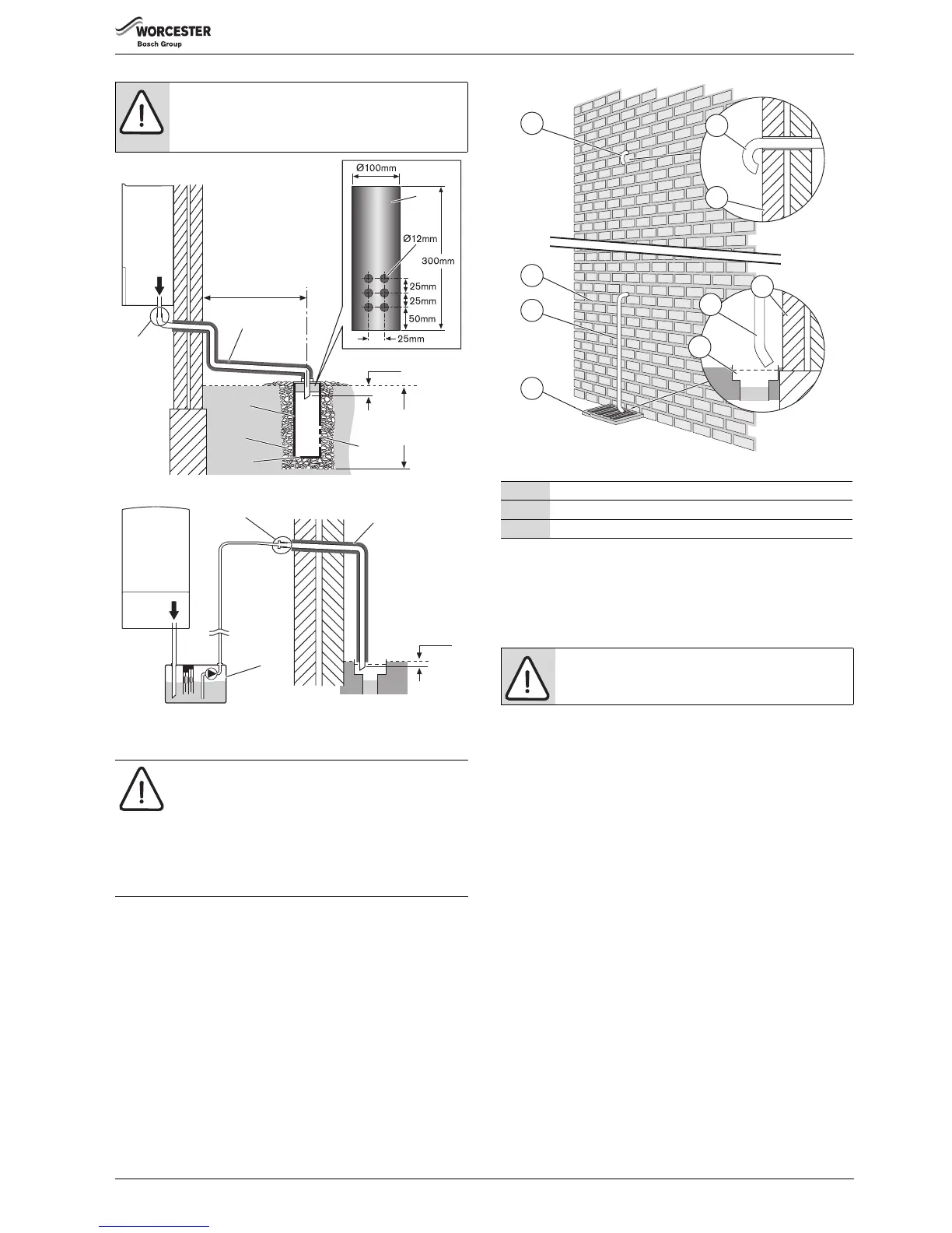 • The pressure relief drain pipe (1) from the boiler should be at least