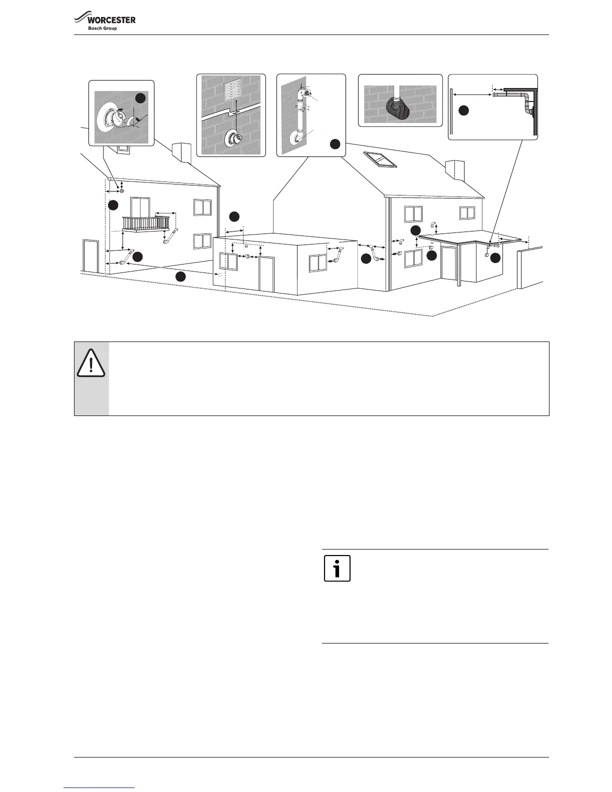 B Terminals must be positioned so to avoid combustion products entering the building.