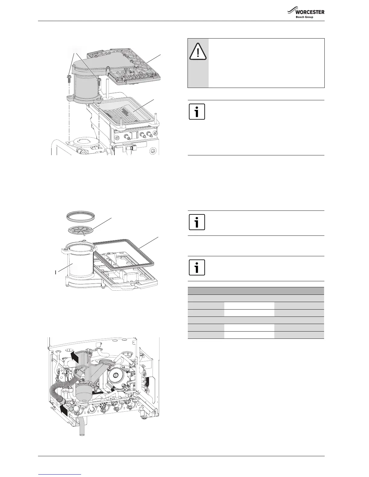 B Fill the condensate trap with approximately 1/4 litre of water and refit