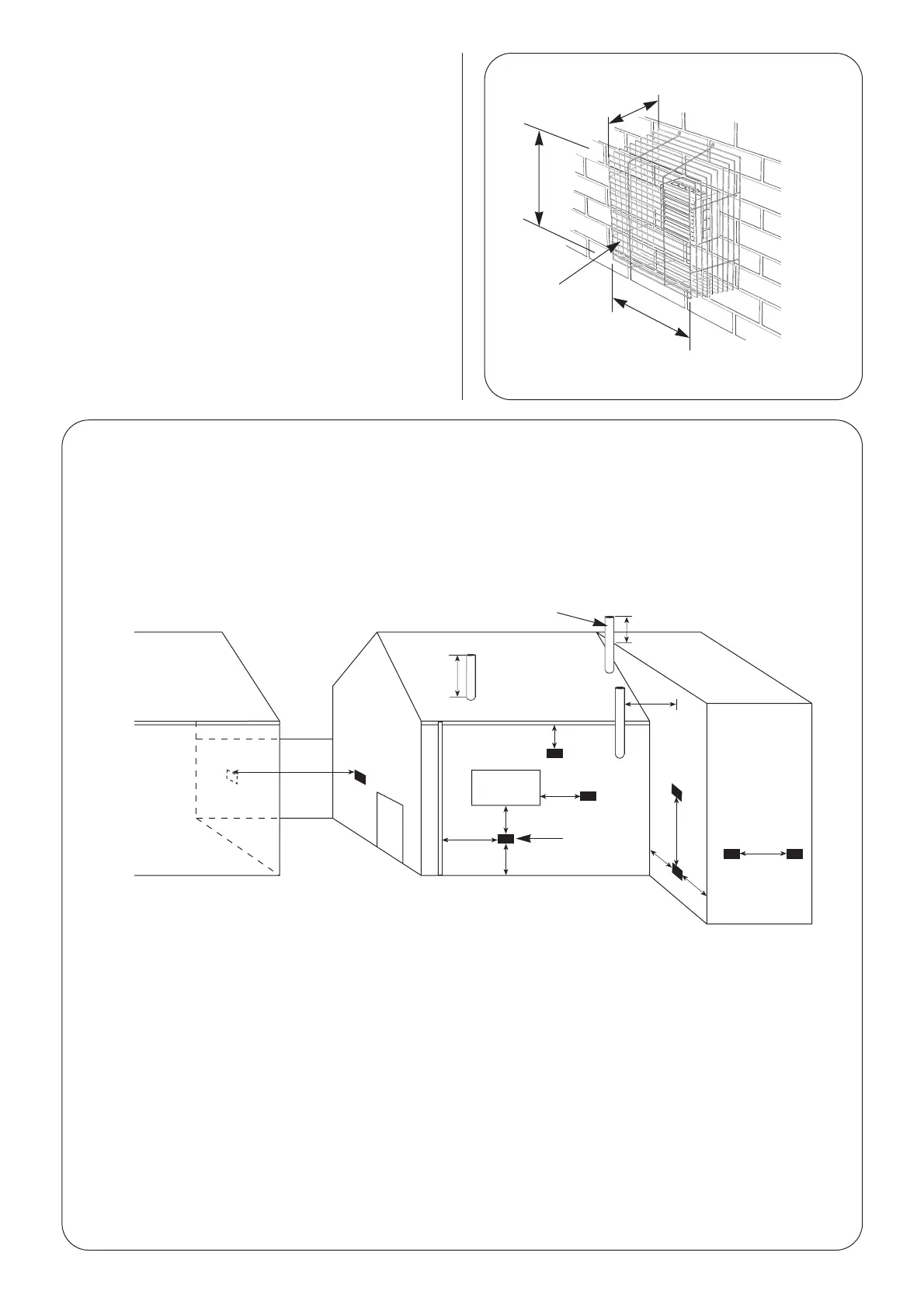 B Horizontally to an opening, air brick, window, etc. .............. Not allowed 600