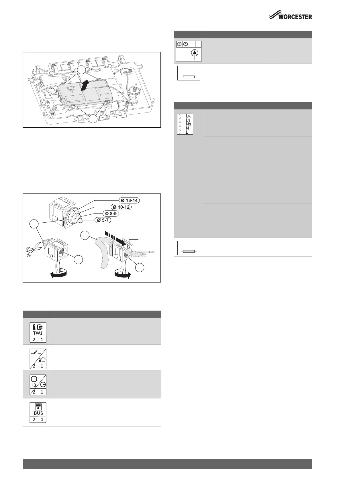 Table 21 Terminal strip for external accessories (230V interface unit)