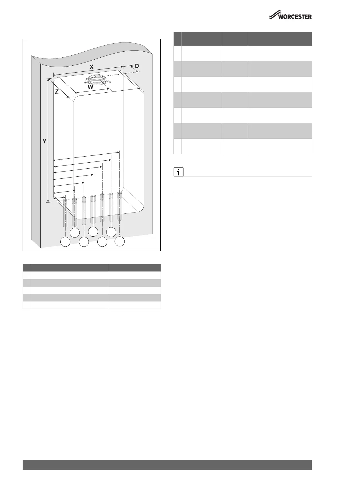 Table 3 Appliance and flue outlet dimensions