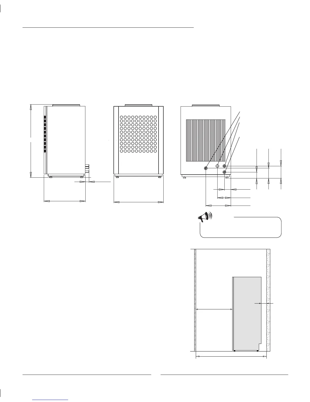 Required installation space for the heat pump.
