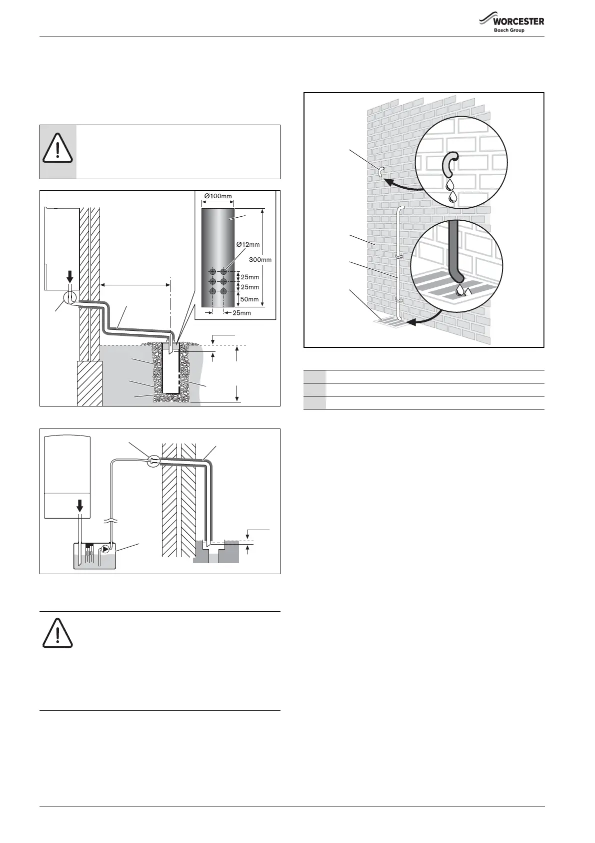 • The pressure relief drain pipe (1) from the boiler should be at least