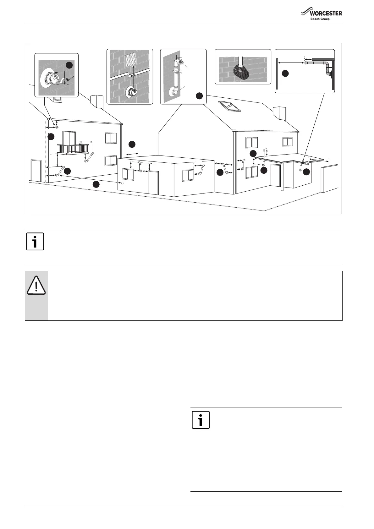 ▶ Terminals must be positioned so to avoid combustion products entering the building.