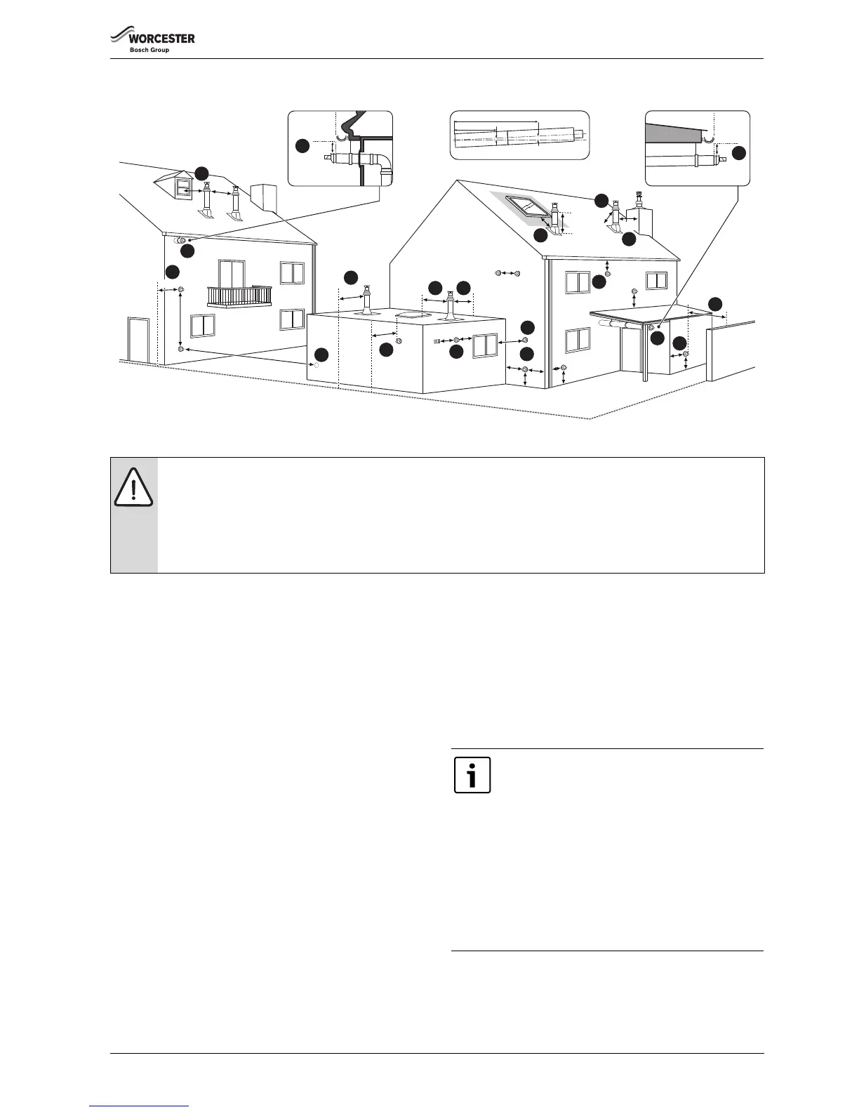 ▶ Terminals must be positioned so to avoid combustion products entering the building.