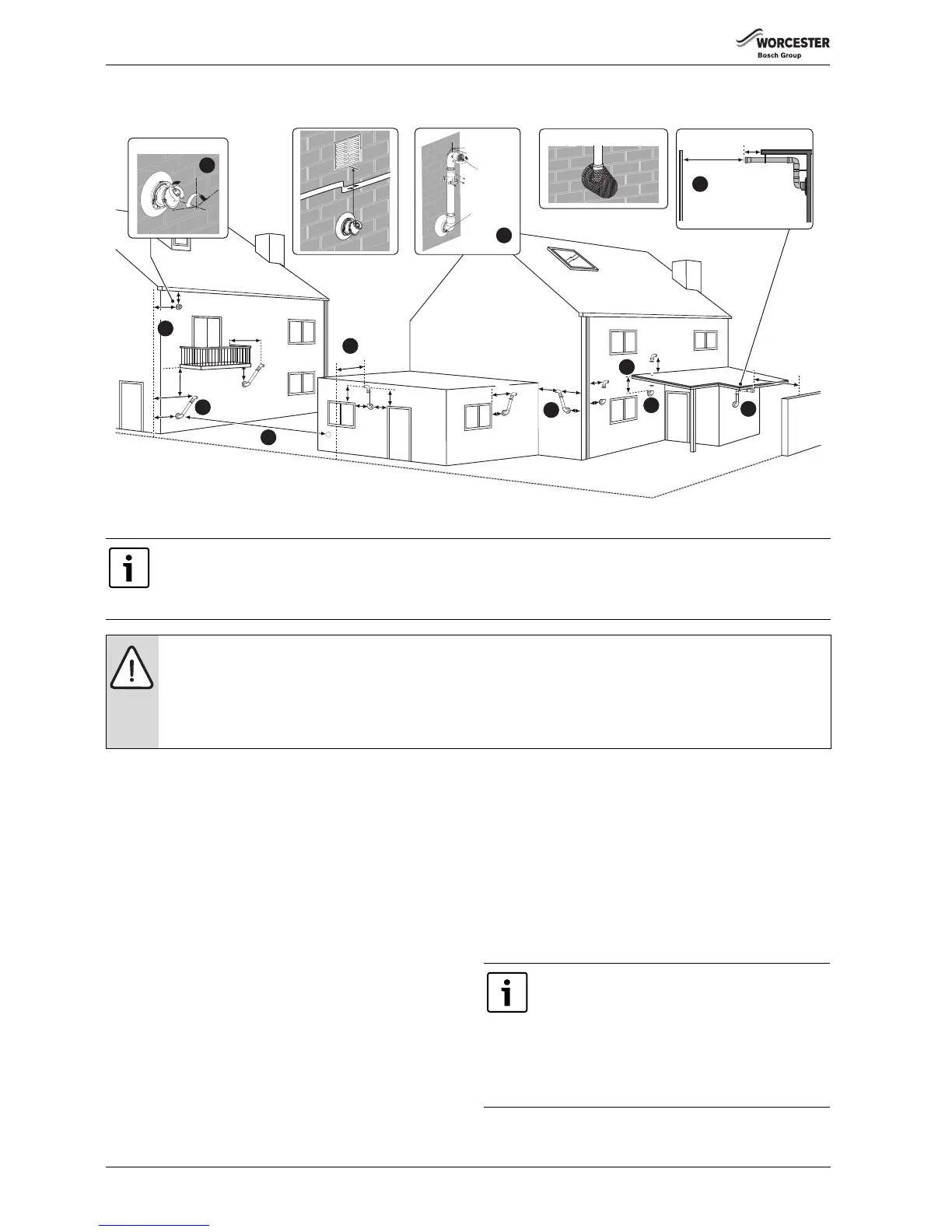 ▶ Terminals must be positioned so to avoid combustion products entering the building.