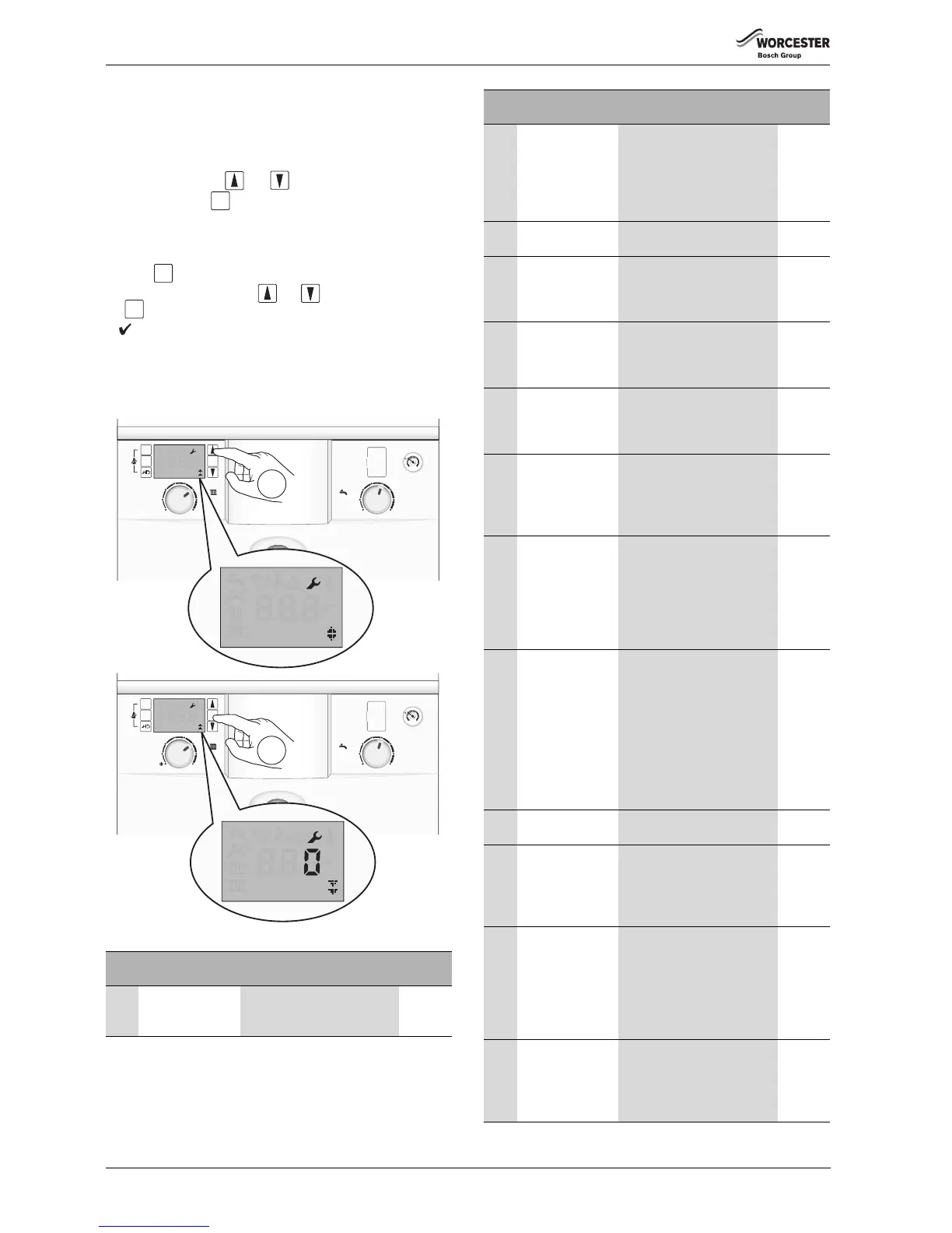 This menu lists the boiler parameters, which can be adjusted in this