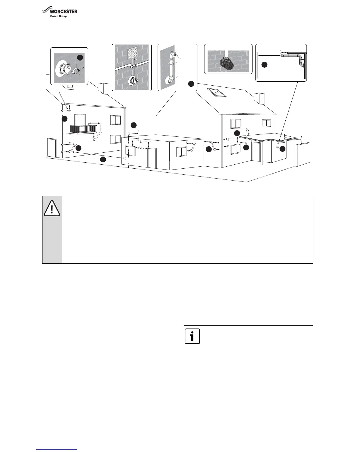▶ Terminals must be positioned so to avoid combustion products entering the building.
