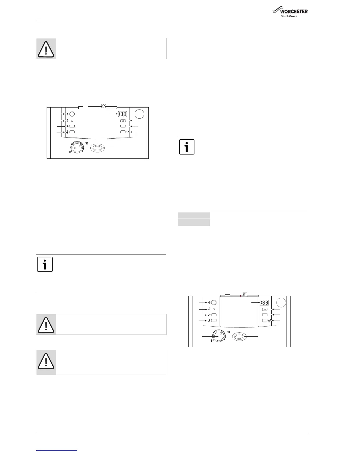 2. Turn the CH temperature control (6) to maximum. The burner on