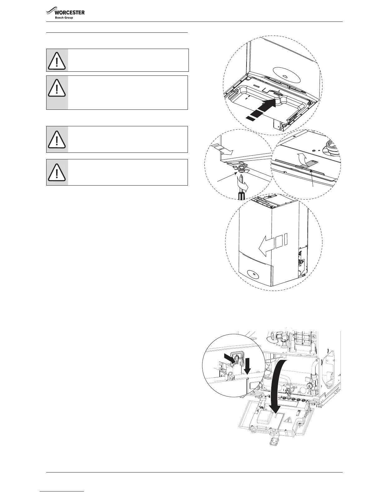 3. Pull upwards to release the clip (B) on top of the boiler.