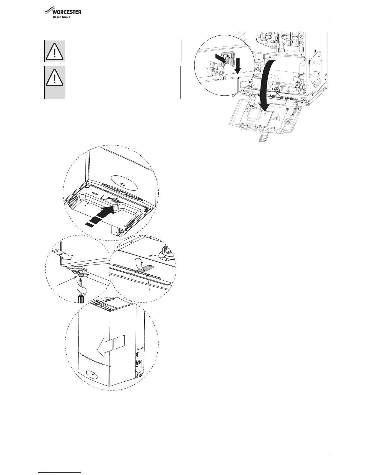 3. Pull upwards to release the clip (B) on top of the boiler.