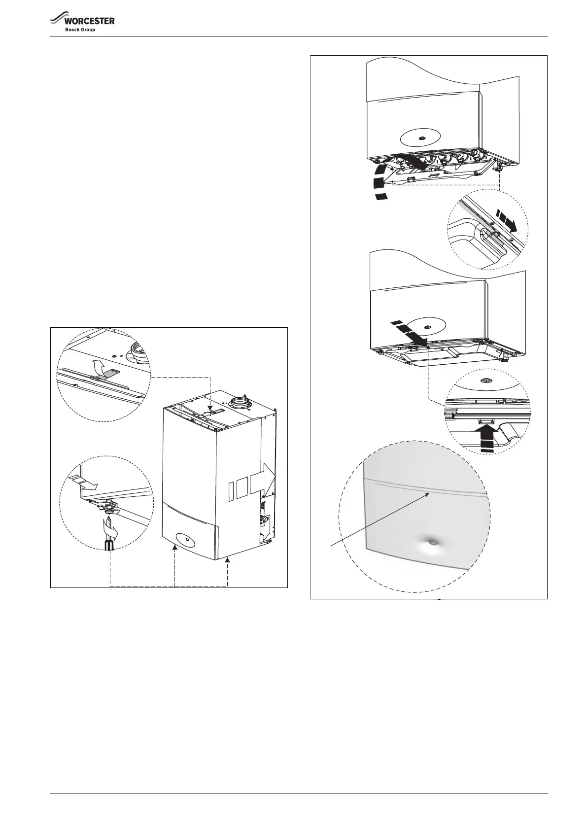 2. The bottom panel slides onto two ledges (C) either side of the boiler