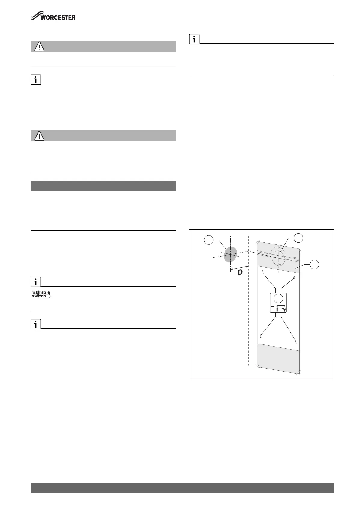 • If a 60/100mm diameter flue is to be used, a 125mm diameter hole