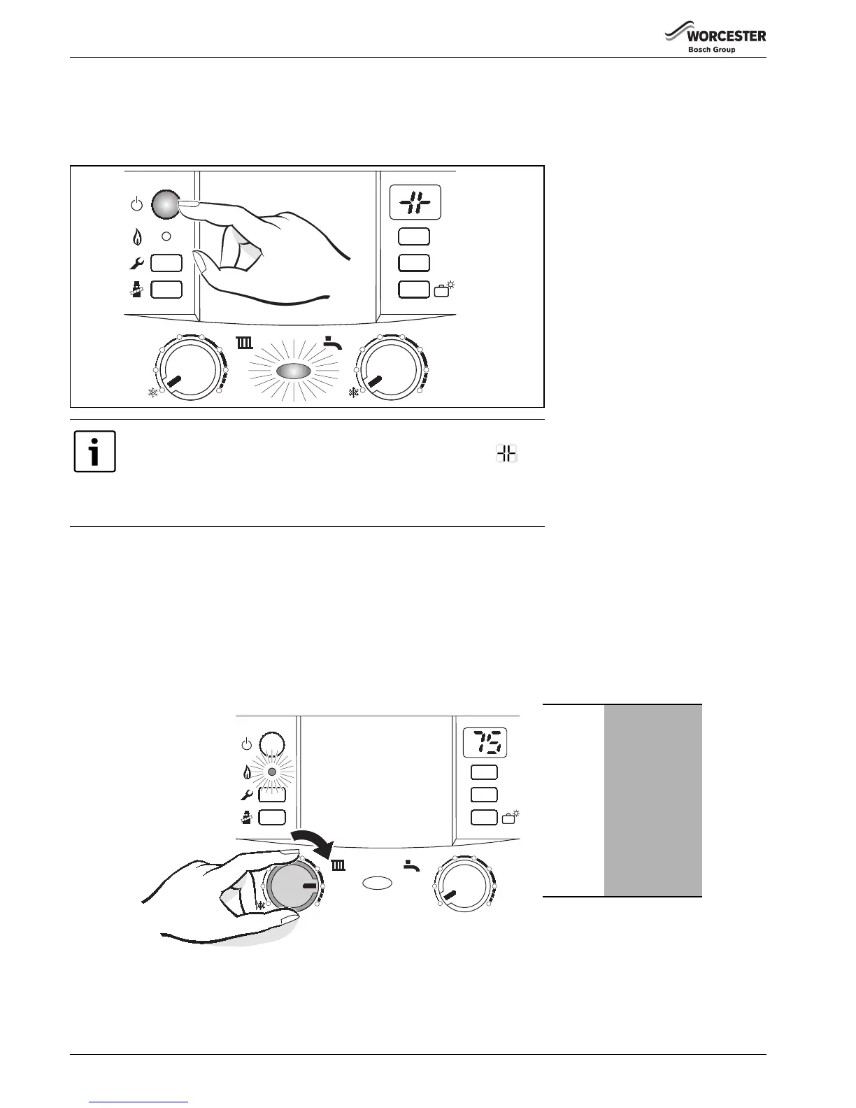 B Turn the central heating temperature control to the desired level, between approx. 35°C and 90°C.