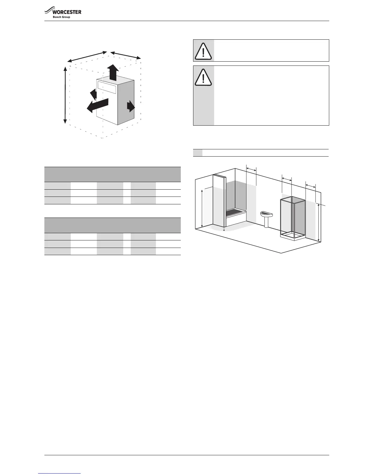 The boiler must not be installed in the bath or shower or in zones 1 or 2