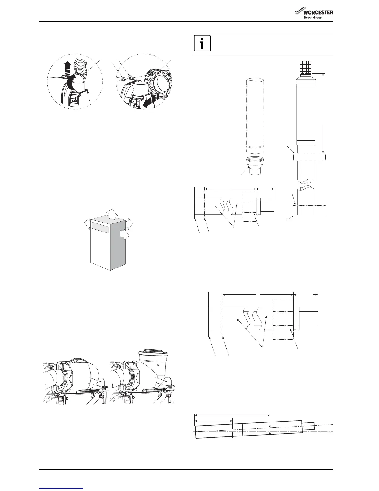 ▶ If using an extension or horizontal terminal onto the boiler flue outlet,