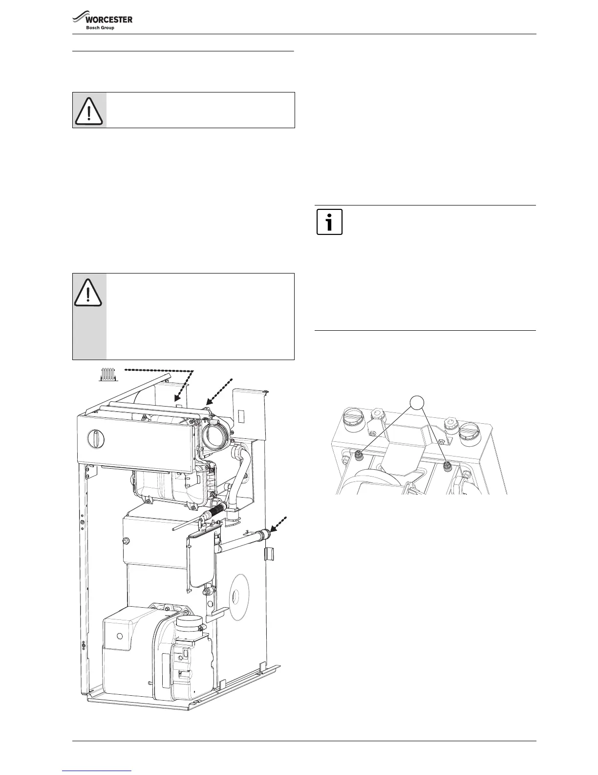 [1] Manual vent points (each side of the secondary heat exchanger).