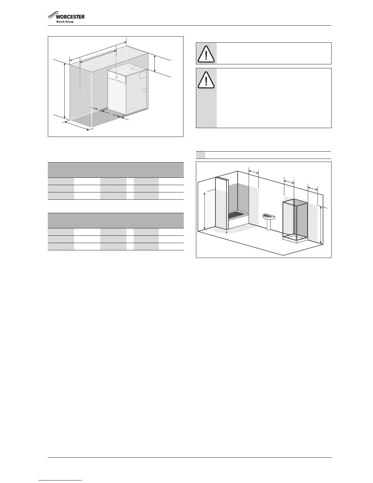 The boiler must not be installed in the bath or shower or in zones 1 or 2