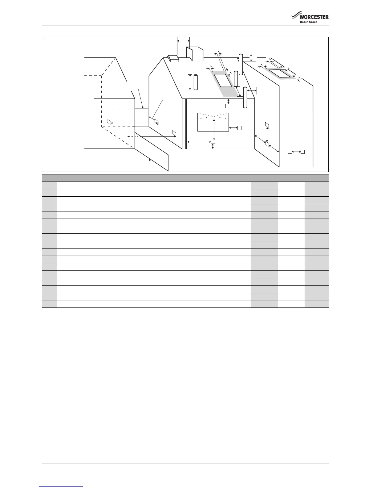 [**] Recommended minimum distance of the flue terminal to a facing wall, fence, building or property boundary is 2500mm.