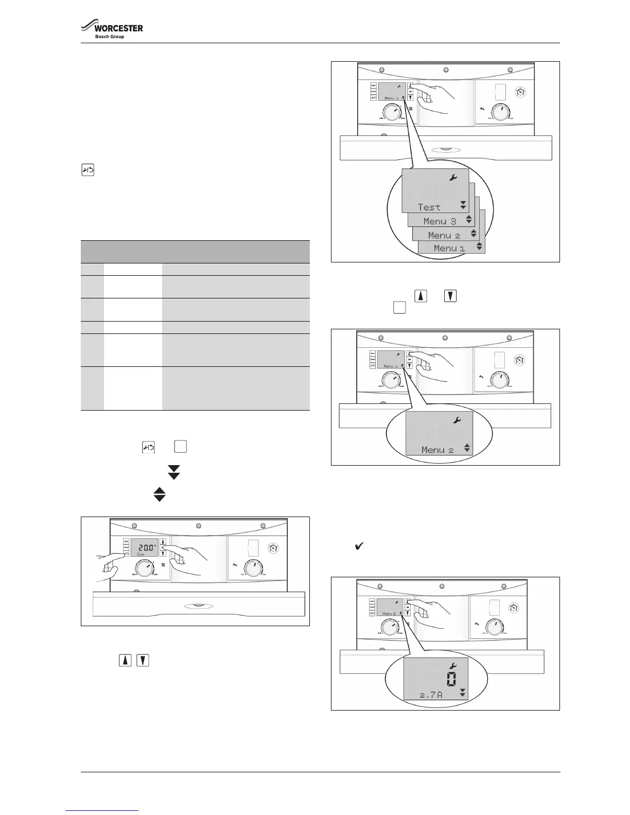 The menu lists the boiler parameters, that can be adjusted in this menu.