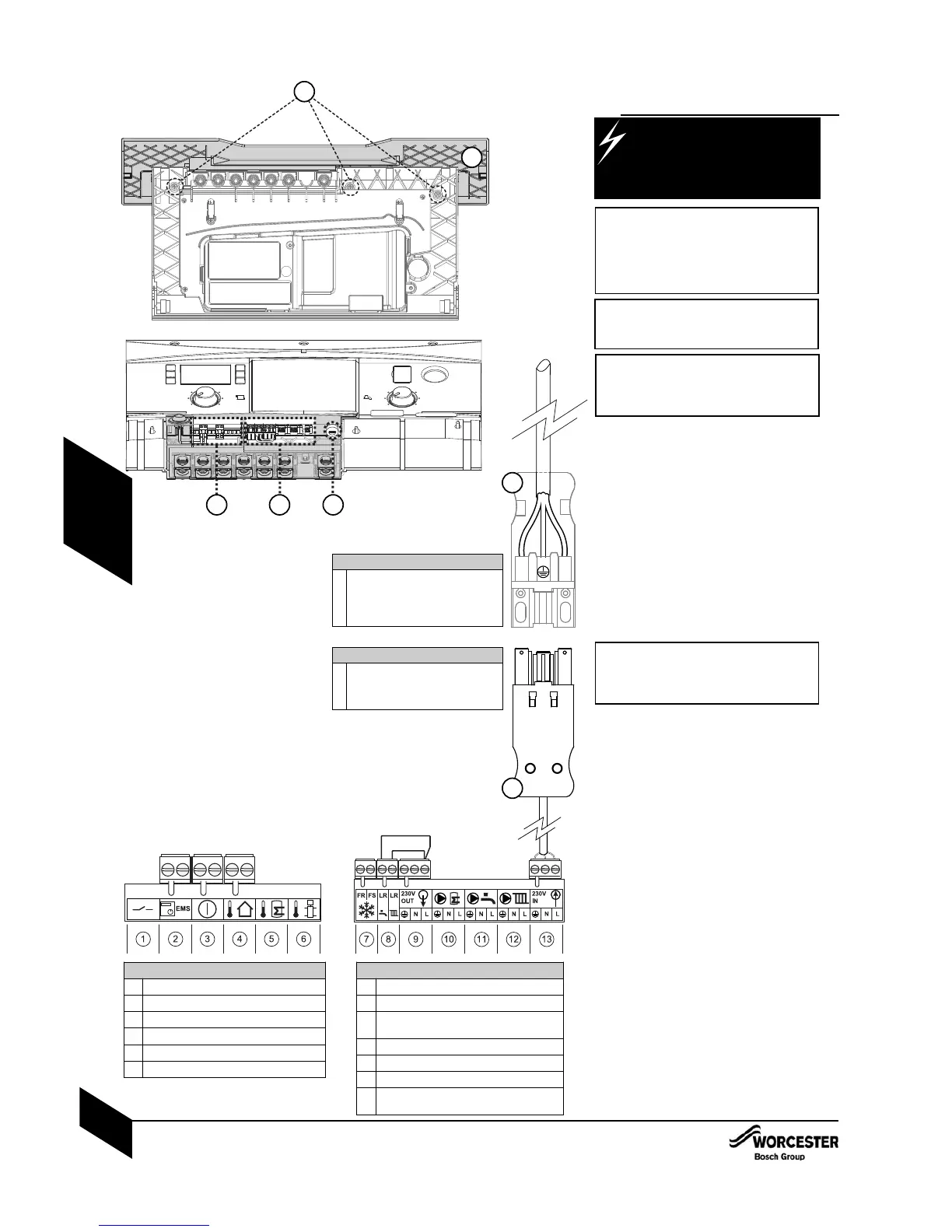 • The 230V supply to the boiler must be wired