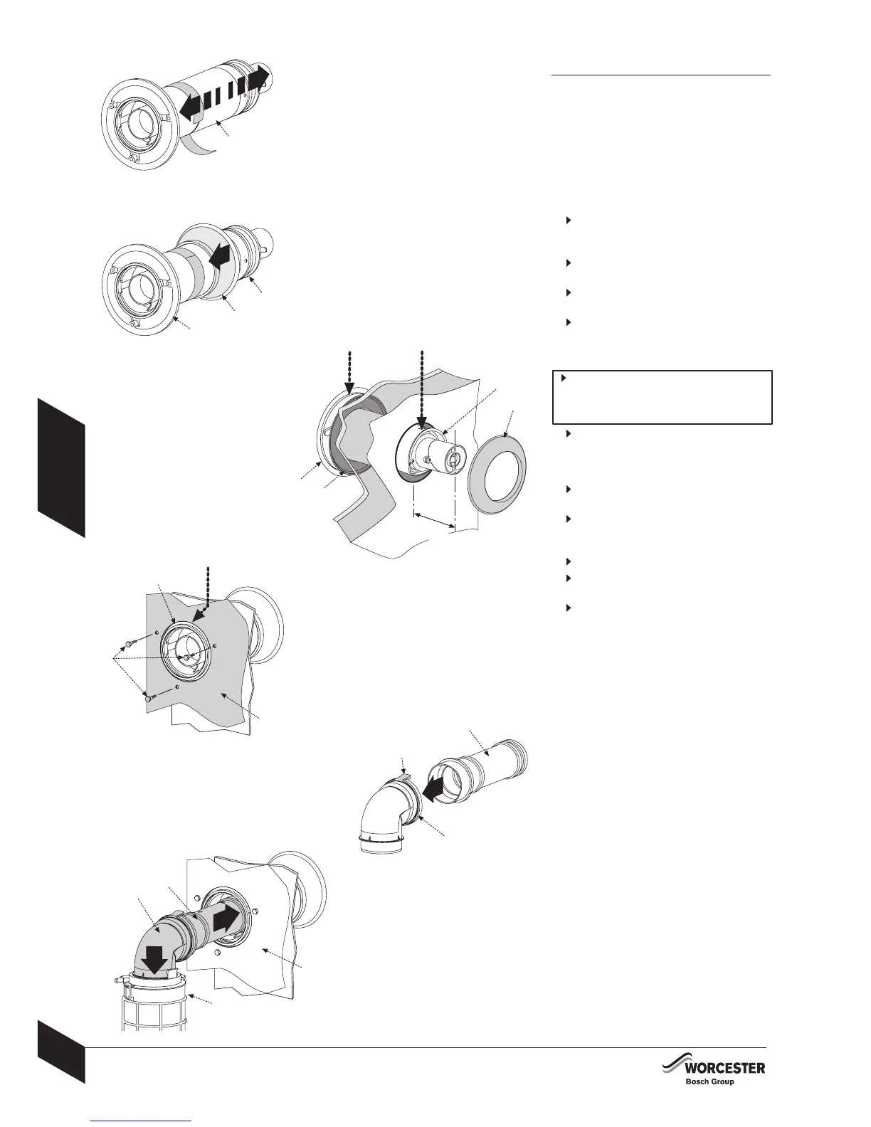 Set the flue terminal (B) to the distance