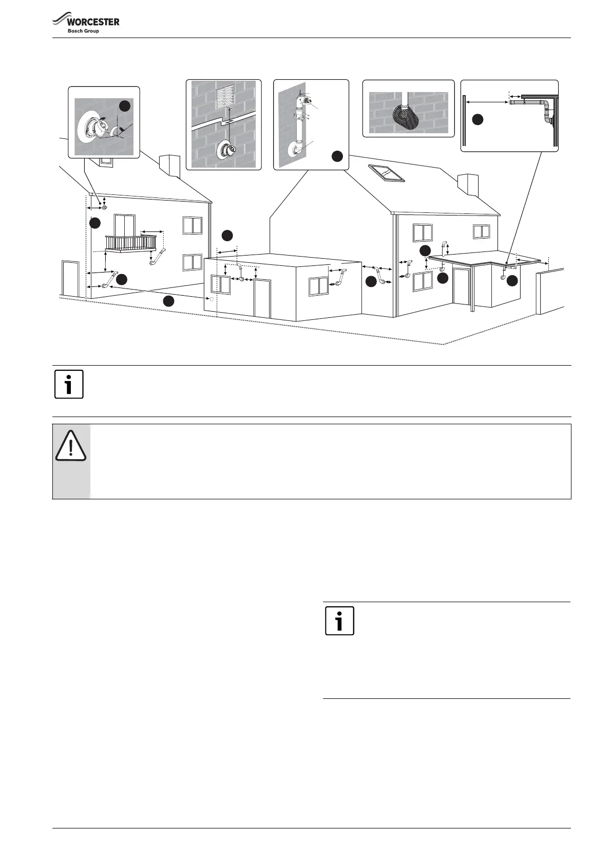 ▶ Terminals must be positioned so to avoid combustion products entering the building.