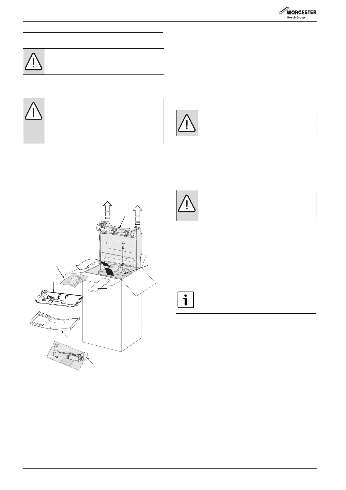 • Two people should share the lifting of the boiler up to the loft hatch,