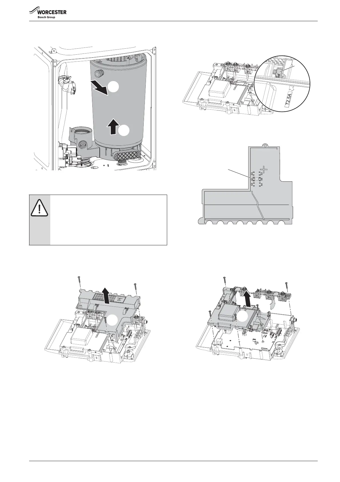 ▶ Remove fuse holder with the fuse F1 (1) from the PCB, change the